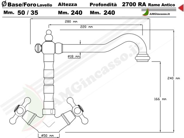 Rubinetto Antico Secolo antico rustico Canna Alta stile Rame antico