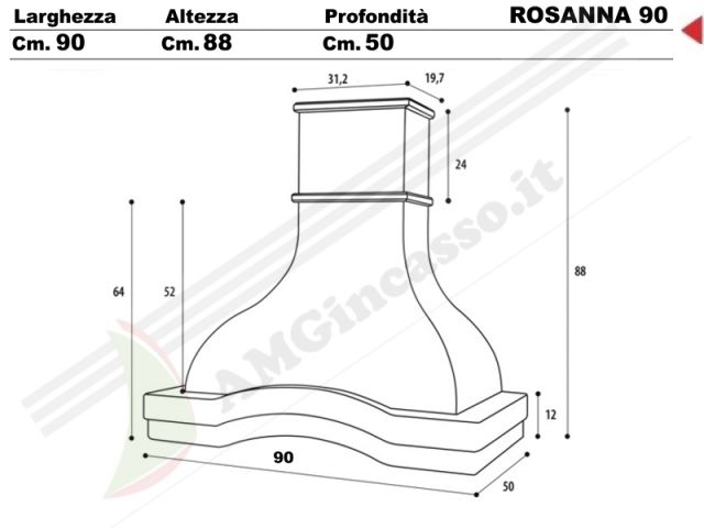 ROSANNA/G/90 - Cappa Rosanna Cm.90 cucina rustica country incasso decorativa cornice legno grezzo