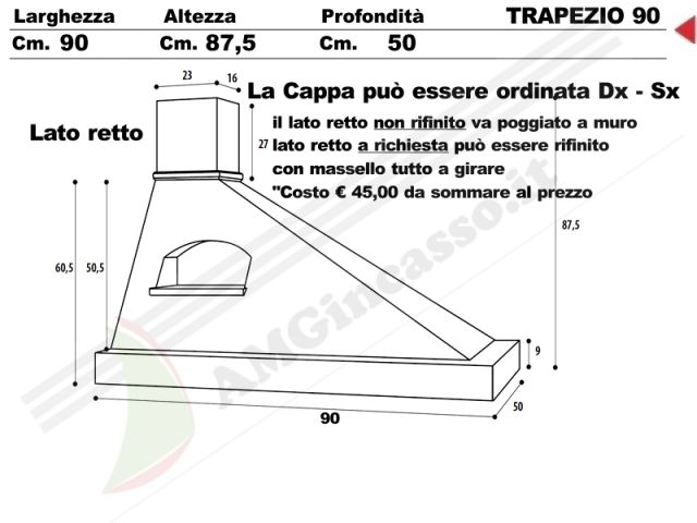 TRAPEZIO/G/90 - Cappa Trapezio Cm.90 cucina rustica country incasso decorativa con nicchia cornice legno grezzo