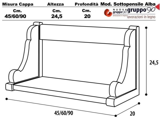 Sottopensile Alba 45 Legno grezzo incasso cucina larghezza cm.45