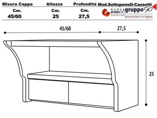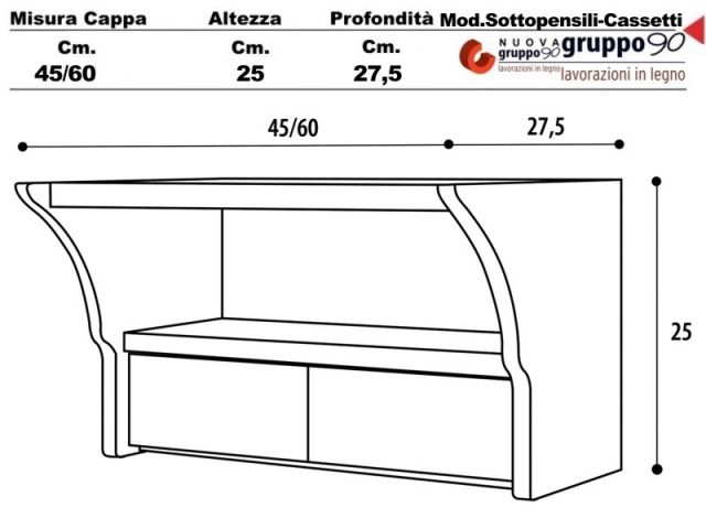 CC/G/45 - Sottopensile con Cassetti 45 Legno grezzo incasso cucina larghezza cm.45
