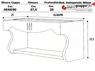 CM/G/90 - Sottopensile Milano 90 Legno grezzo incasso cucina larghezza cm.90