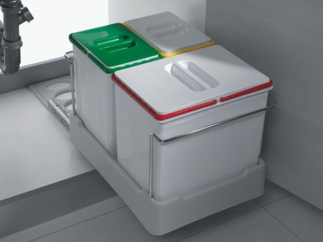 97DE/2 - pattumiera art.97DE/2 cucina sottolavello estrazione frontale 3 secchi raccolta differenziata x base 40 a 120