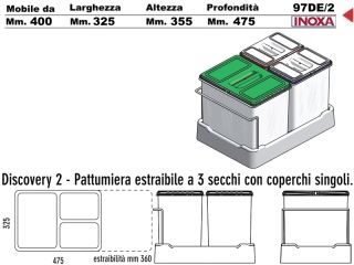 97DE/2 - pattumiera art.97DE/2 cucina sottolavello estrazione frontale 3 secchi raccolta differenziata x base 40 a 120