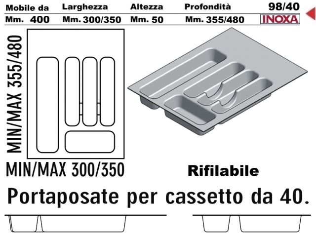 98/40 - Portaposate incasso cucina in Pvc grigio rifilabile per cassetto larghezza cm. CM.40
