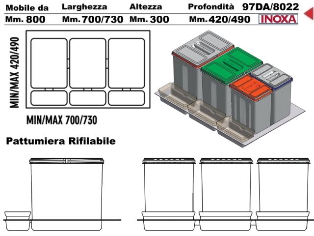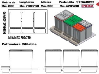 CONTENITORI PER RACCOLTA DIFFERENZIATA PER MOBILE DA 800 mm