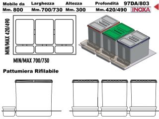 Pattumiera art. 97DA/803 cucina sottolavello raccolta differenziata x cassettone base 80 estraibile