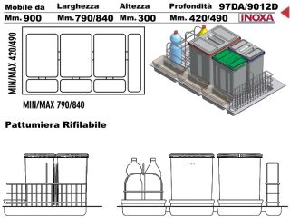 CONTENITORI PER RACCOLTA DIFFERENZIATA PER MOBILE DA 900 mm