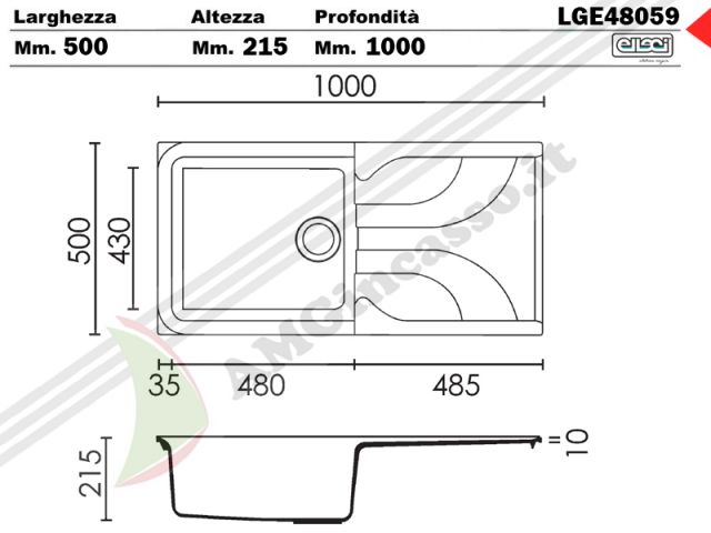 Base: 600 - Foro d'incasso: 980 x 485 mm