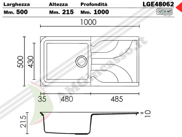 LGE48062 - Lavello Elleci Ego 480 LGE48062 100X50 1 V con gocciolatoio incasso cucina Granitek 62 Bianco Antico