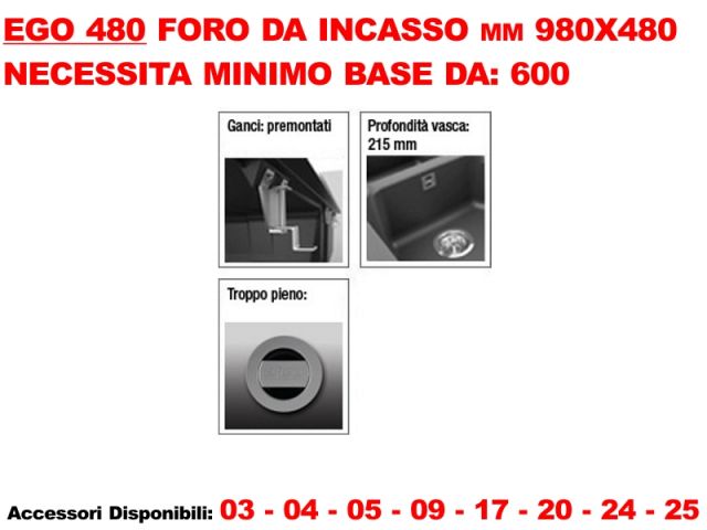 Base: 600 - Foro d'incasso: 980 x 485 mm