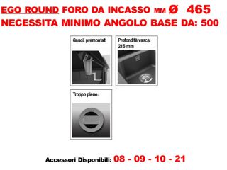 LMEROU70 - Lavello Elleci Ego Round LMEROU70 Pozzetto Tondo Ø 485 1 Vasca incasso cucina Metaltek 70 Ghisa