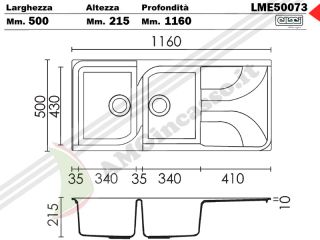 Lavello Elleci Ego 500 116x50 LME50073 2 vasche con Gocciolatoio