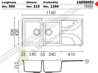 LGE50052 - Lavello Elleci Ego 500 LGE50052 116x50 2 vasche con gocciolatoio incasso cucina Granitek 52 Bianco