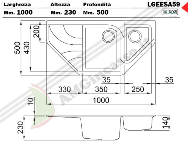 Lavello Elleci Ego ESA 100x50 LGEESA59 2 vasche + Gocciolatoio