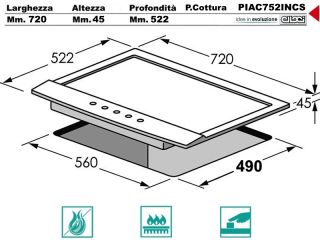 Piano a gas da 75 cm, da incasso