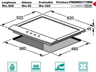 Piano Cottura New Modern 60 Elleci PMSM60173WN incasso cucina 4 Fuochi Valvolato 73 Titanium manopole nere