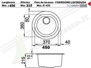LGFROU54 - Lavello Elleci Fox Round LGFROU54 Pozzetto Tondo Ø 450 1 Vasca incasso cucina Granitek 54 Nero