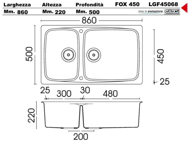 LGF45068 - Lavello Elleci Fox 450 LGF45068 86X50 2 Vasche incasso cucina Granitek 68 Titano