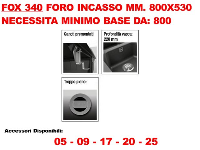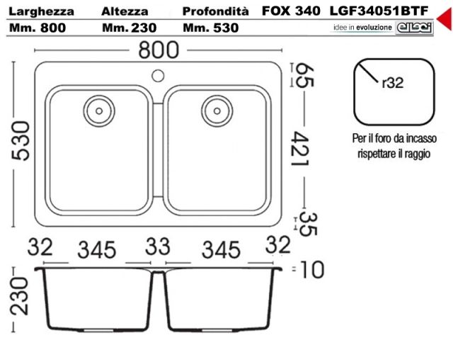 LGF34051BTP - Lavello Elleci fox 340 LGF34051BTP 80X53 2 Vasche incasso cucina Granitek 51 Avena
