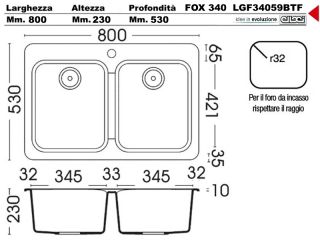 LGF34059BTP - Lavello Elleci fox 340 LGF34059BTP 80X53 2 Vasche incasso cucina Granitek 59 Antracite