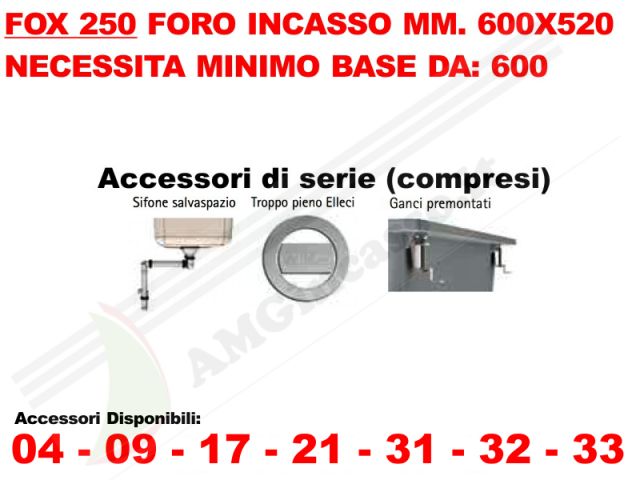 Base: 600 - Foro d'incasso:580 x 500 mm