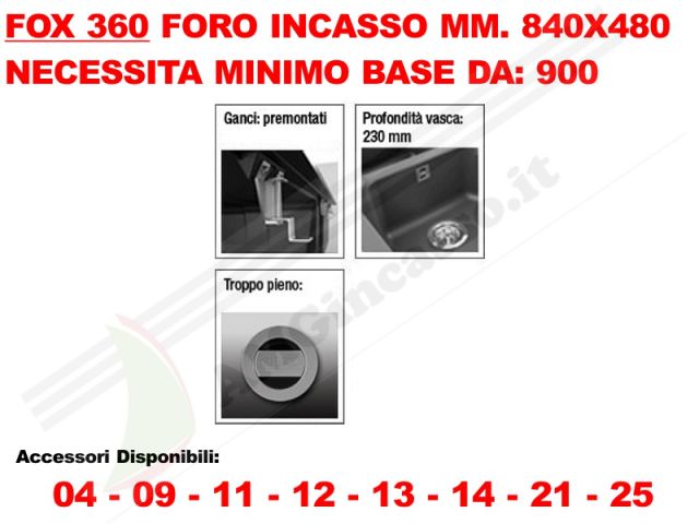 Lavello Elleci Fox 360 LGF36053 860 X 500 1 vascone incasso cucina Granitek 53 Terra