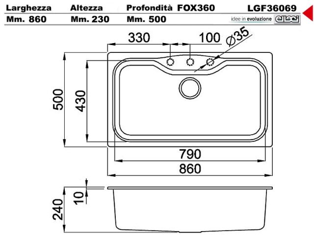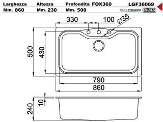 Lavello Elleci Fox 360 LMF36073 860 X 500 1 vascone incasso cucina Metaltek 73 Titanium