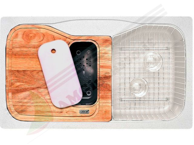 Lavello Elleci Fox 360K4 LGF36052K4 860 X 500 1 Vascone + 4 accessori incasso cucina Granitek 52 Bianco