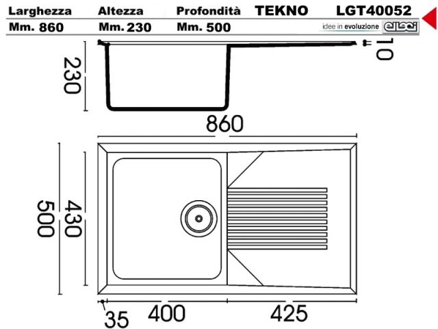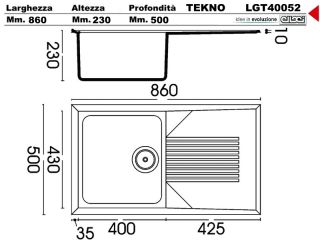 LGT40052 - Lavello Elleci Tekno 400 LGT40052 86X50 1 V con gocciolatoio incasso cucina Granitek 52 Bianco