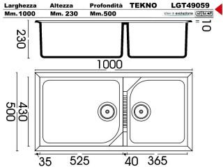 LGT49059 - Lavello Elleci Tekno 490 LGT49059 100X50 2 Vasche incasso cucina Granitek 59 Antracite