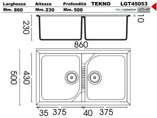 LGT45053 - Lavello Elleci Tekno 450 LGT45053 86X50 2 Vasche incasso cucina Granitek 53 Terra