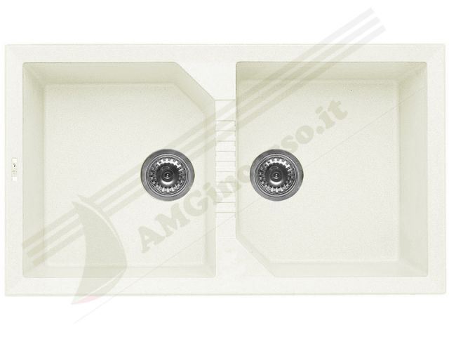 Lavello 2 vasche , profondità vasca 230 mm e ganci premontati.piletta salterello compresa