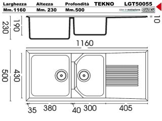 LGT50055 1160 X 500 2 Vasche + Gocciolatoio