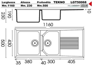 LGT50068 1160 X 500 2 Vasche + Gocciolatoio