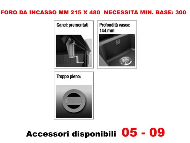 Lavello Elleci Quadra 50 Standard LGQ05062 23X50 1 Vasca incasso cucina Granitek 62 Bianco Antico