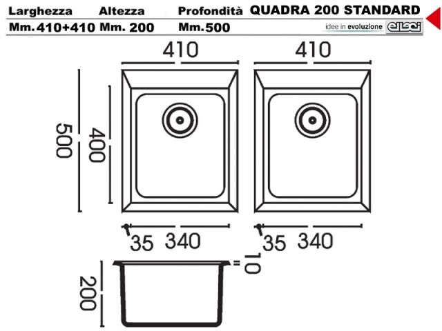 LGQ20054 - Lavello Elleci Quadra 200 LGQ20054 Standard 41X50 + 41X50 2 Vasche incasso cucina Granitek 54 Nero