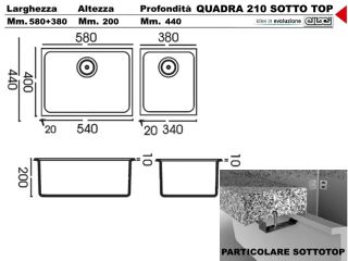 Lavello Elleci Quadra 210 LGQ21059BSO Sotto top 58X44 + 410X440 2 Vasche incasso cucina Granitek 59 Antracite