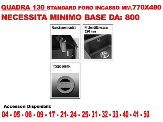 Base: 800 - Foro d'incasso: 770 x 480 mm