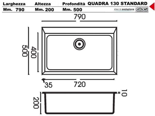 Lavello Elleci LGQ13068 Quadra 130 Standard 79X50 1 vasca incasso cucina Granitek 68 Titano