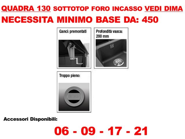 LGQ13052BSO - Lavello Elleci LGQ13052BSO Quadra 130 Sotto top 755X440 1 vasca incasso cucina Granitek 52 Bianco
