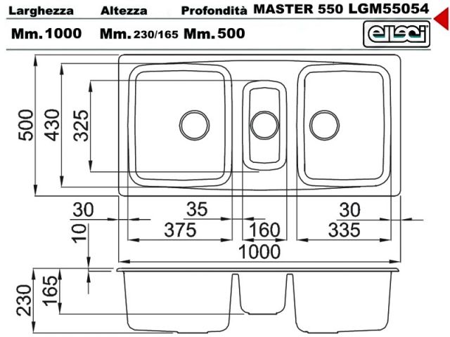 Lavello Elleci Master 550 LGM55054 100x50 3 Vasche incasso cucina Granitek Nero 54