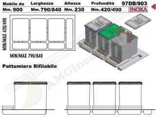 97DB/903 - pattumiera art.97DB/903 cucina sottolavello raccolta differenziata x cassettone base 90 estraibile