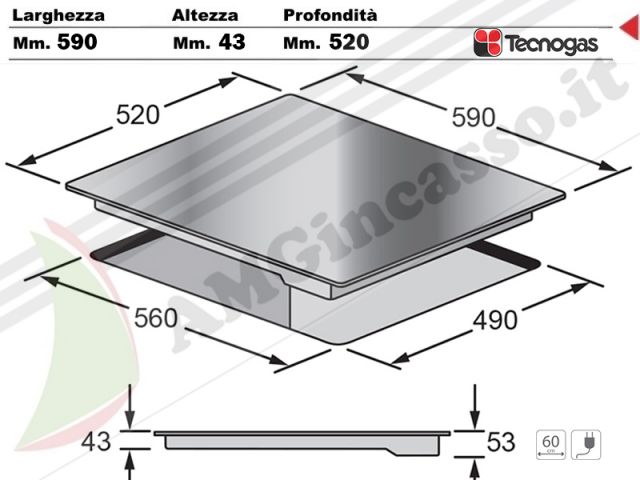 VTF64 - Piano Cottura 60 incasso cucina Tecnogas VTF64 4 zone vetroceramica - comandi frontali touch control Nero