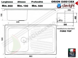 OI 8613 860X500 1 Vasca Sinistra con Gocciolatoio Destra
