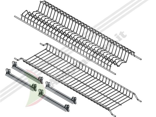 Scolapiatti inox Kit Griglia Piatti Biccheri + Vaschetta Raccogligocce + Telaio Alluminio
