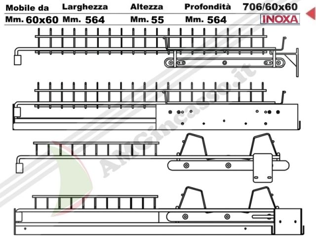 La sezione dedicata ai Meccanismi e senz’altro il segmento più importante di tutta la produzione INOXA. Un’intera gamma di prodotti ben rifiniti che riescono a coniugare design e utilità. L’utilizzo di questi articoli esalta gli spazi interni e rende pratico lo sfruttamento della cucina. Tutti gli articoli sono equipaggiati con guide di produzione europea (Thomas Regout, Schock,) o americana (Accuride) per alte prestazioni e per un longevo utilizzo. Di serie viene montato su di essi il dispositivo di chiusura ammortizzata (Soft-Closing Systhem); gran parte degli articoli è equipaggiato con un Soft-Close prodot-to in Italia (Vapsint) mentre altri utilizzano dispositivi integrati nei sistemi di scorrimento e quindi anch’essi di produzione occidentale. Per tutti viene utilizzata una vernice in polvere termoindurente metallizzata bonderizzata antigraffio ed antimacchia