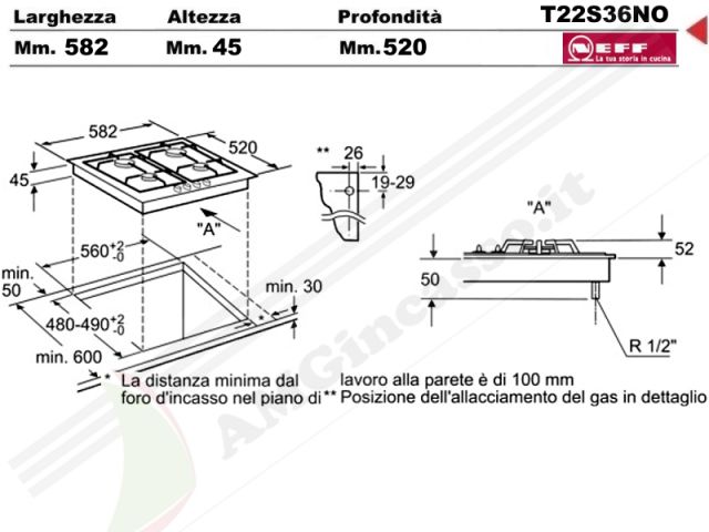 Piano Cottura 60 incasso cucina Neff T22S36N0 4 Fuochi Inox griglie in Ghisa