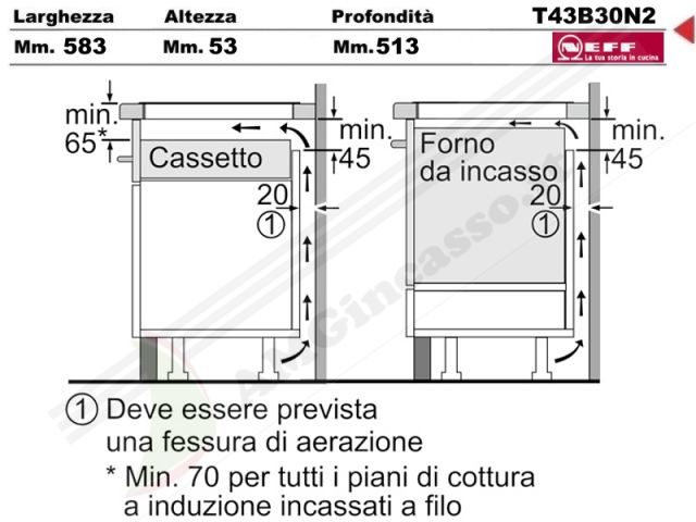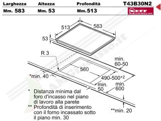 T43B30N2 - Piano Cottura 60 incasso cucina Neff T43B30N2 in vetroceramica induzione con comandi integrati