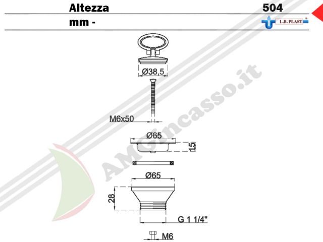 Piletta L.B.PLAST 504 Ø 65 tappo maniglia Ø 38,5 senza troppo pieno
